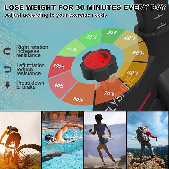 - đ´ăINFINITE ADJUSTABLE RESISTANCE SYSTEMă Customize your workout intensity with the bike’s adjustable resistance levels to suit your fitness goals, allowing for a challenging or comfortable workout. This exercise bike provides an effective cardiovascular workout to improve heart health and burn calories.