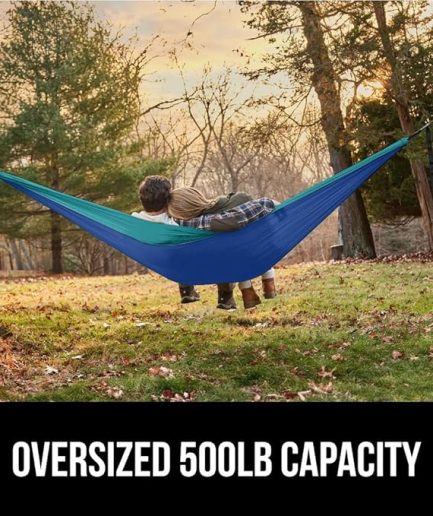 • GORILLA GRIP Durable Portable Camping Hammock, Holds 500lbs with Heavy Duty Tree Straps, Comfortable Travel Swing, Camp Hammocks, Easy to Use and Install, Outdoor Essentials, Blue, 10x6.5 FT